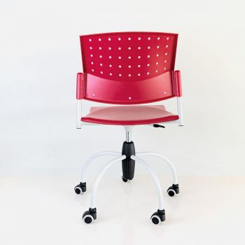 Silla con asiento en polipropileno y respaldo tapizado en malla. Base de 5 puntas CROMADA con rodajas, ajuste altura con pistón. Para uso interno.