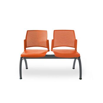 Banca con asiento y respaldo en polipropileno, con base de 4 patas en tubular de acero pintado en NEGRO. Respaldo multiperforado.